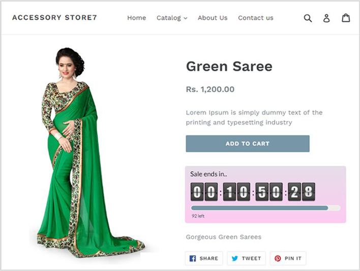 Countdown timer to show stock or sale running out and inspire visitors to purchase as soon as possible before a product becomes unavailable.