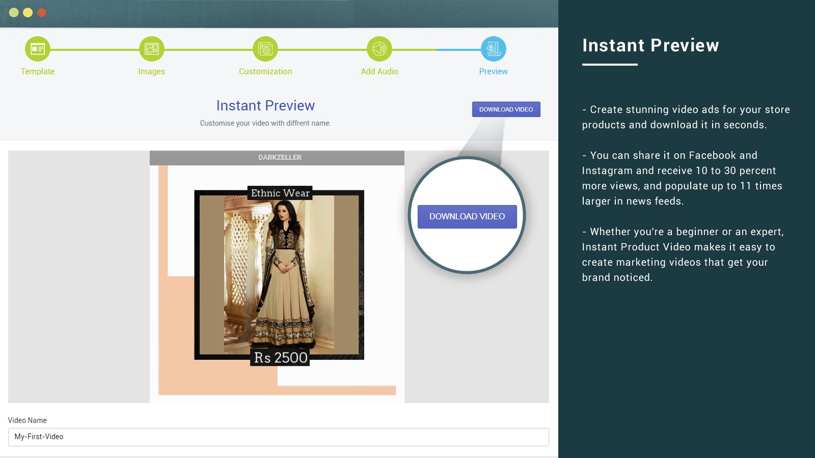 You can download videos on your computer once you are OK with the preview. And later you can share it on social media accounts to market your store or product.